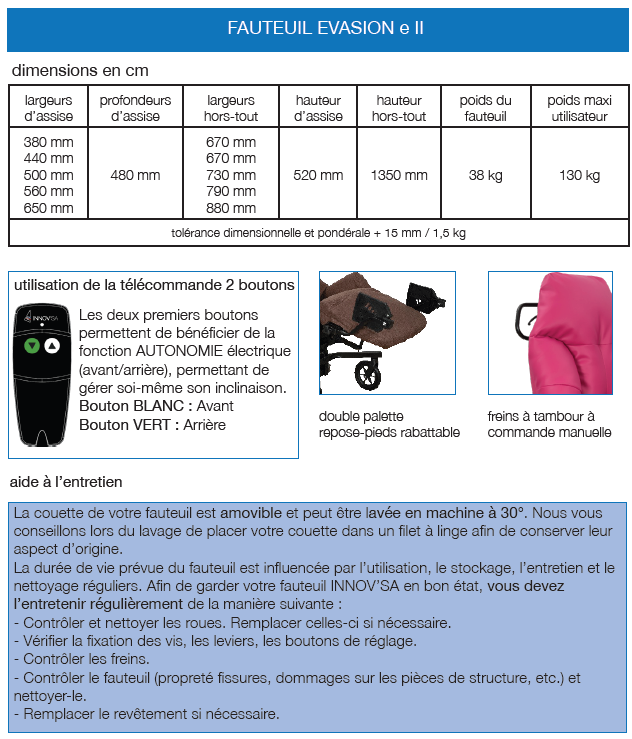 Les équipes de design et recherche internes, ont conçu l’EVASION II pour le plus grand confort de l’utilisateur et de l’aidant :