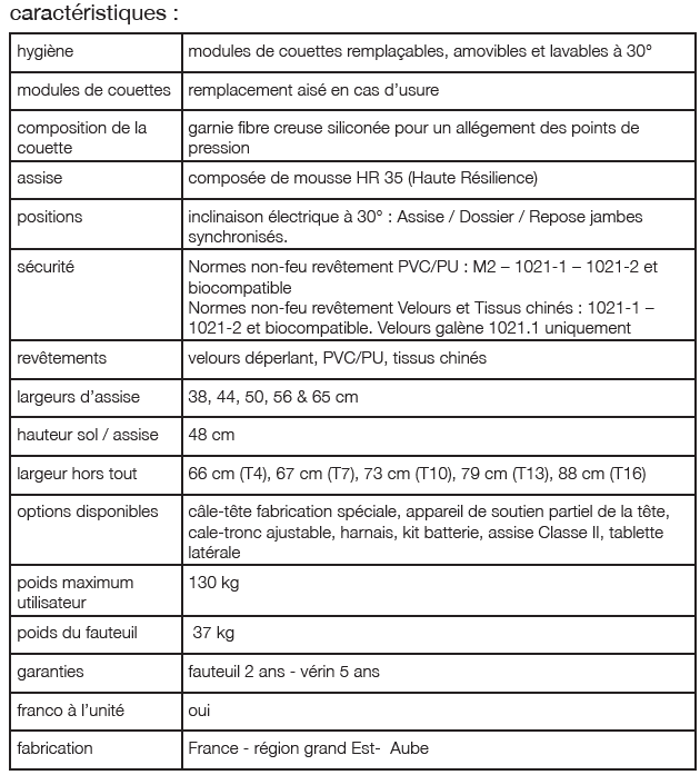- la largeur du fauteuil au niveau du reposes-jambes et la largeur de l’assise sont identiques dans le but de garantir le meilleur maintien possible et un grand confort des membres inférieurs.