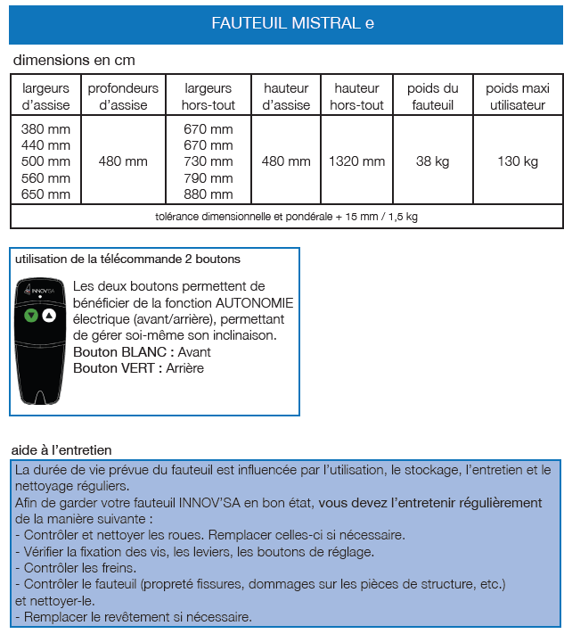 Le Fauteuil à Pousser MISTRAL e est un fauteuil à inclinaison à 30°, 100% électrique. Il a été pensé pour les personnes à mobilité réduite assistées d’un accompagnant.
