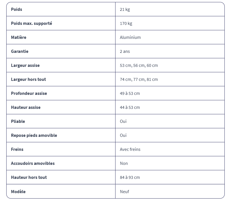 Le V300 est un fauteuil roulant manuel léger pour une utilisation temporaire ou permanente avec de nombreux réglages :